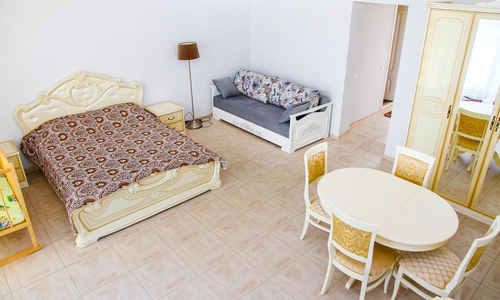 Ежедневная уборка номера. В РЦ «Алые Паруса» подготовлено 5 номеров следующих категорий: однокомнатный одноместный «Стандарт», двухкомнатный двухместный «Стандарт», трехкомнатный четырехместный «Люкс», трехкомнатный двухместный «Люкс», апартаменты-шале двухместные.