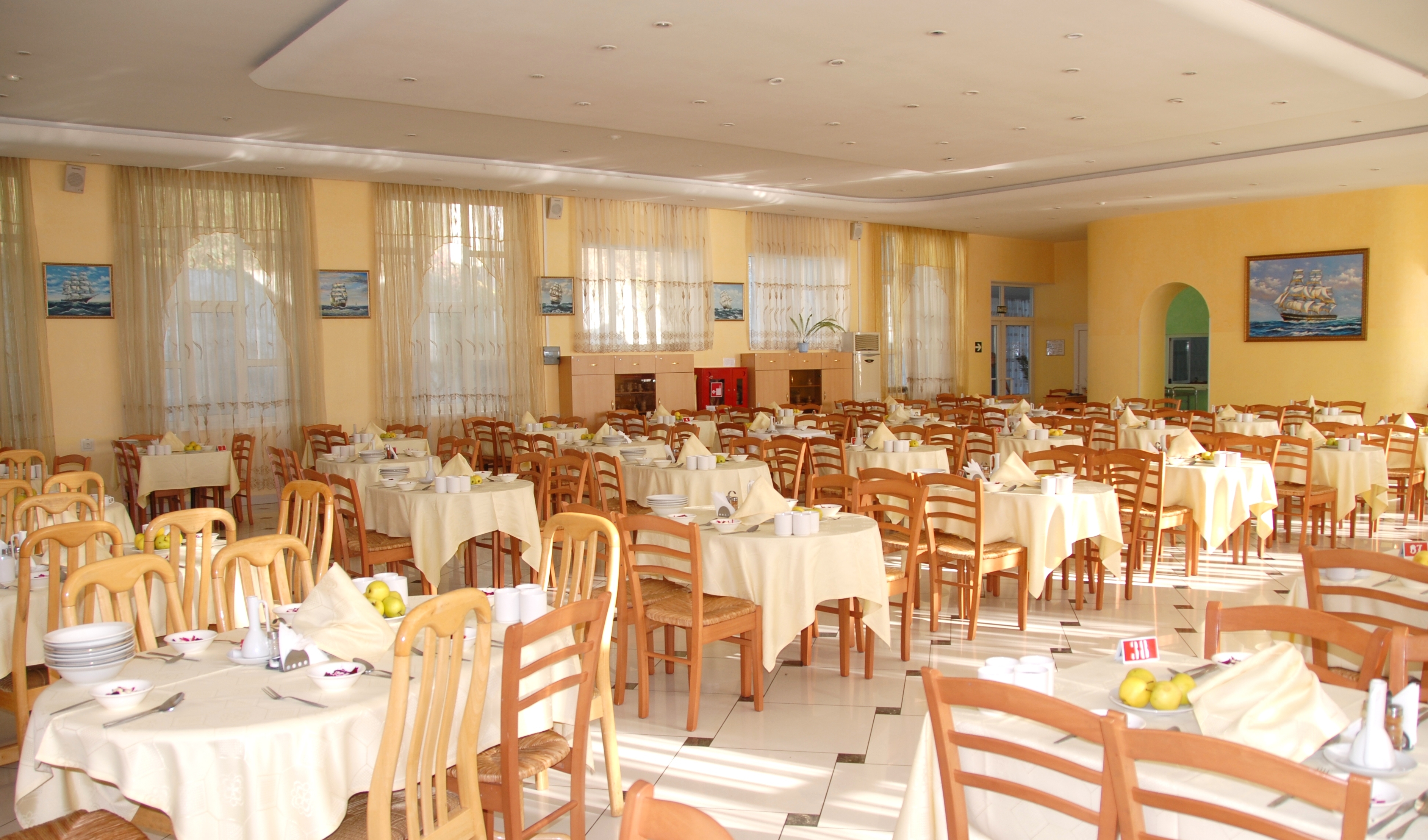 Имеется отдельная детская столовая (для детского лагеря) с 5-ти разовым сбалансированным питанием.